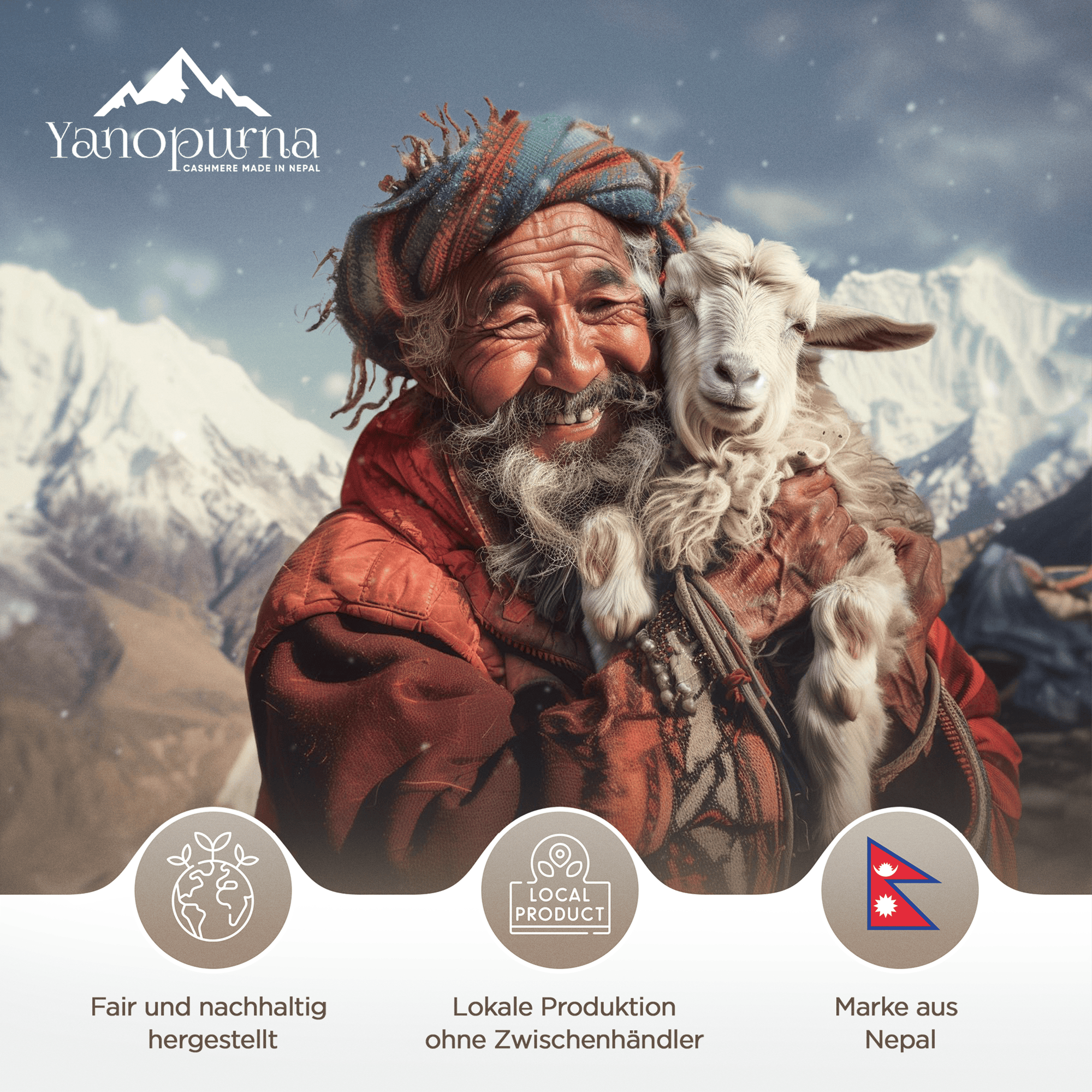Nos produits en cachemire proviennent de la magnifique région himalayenne du Népal. Là-bas, dans les montagnes majestueuses, vous trouverez la maison des chèvres cachemire, qui fournissent l'une des fibres les plus précieuses et les plus douces au monde : la laine cachemire. Les techniques traditionnelles de l'artisanat du Cachemire ont été transmises de génération en génération par des artisans locaux au Népal pour garantir la qualité exceptionnelle de nos produits.