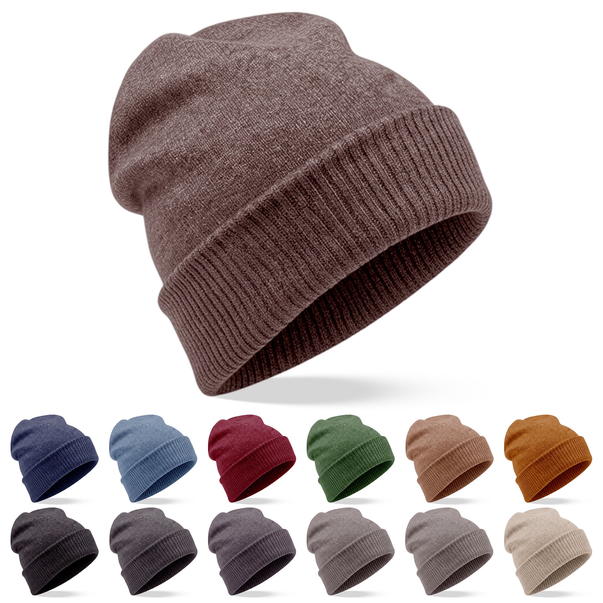 Bonnet en cachemire lisse avec revers côtelé marron foncé
