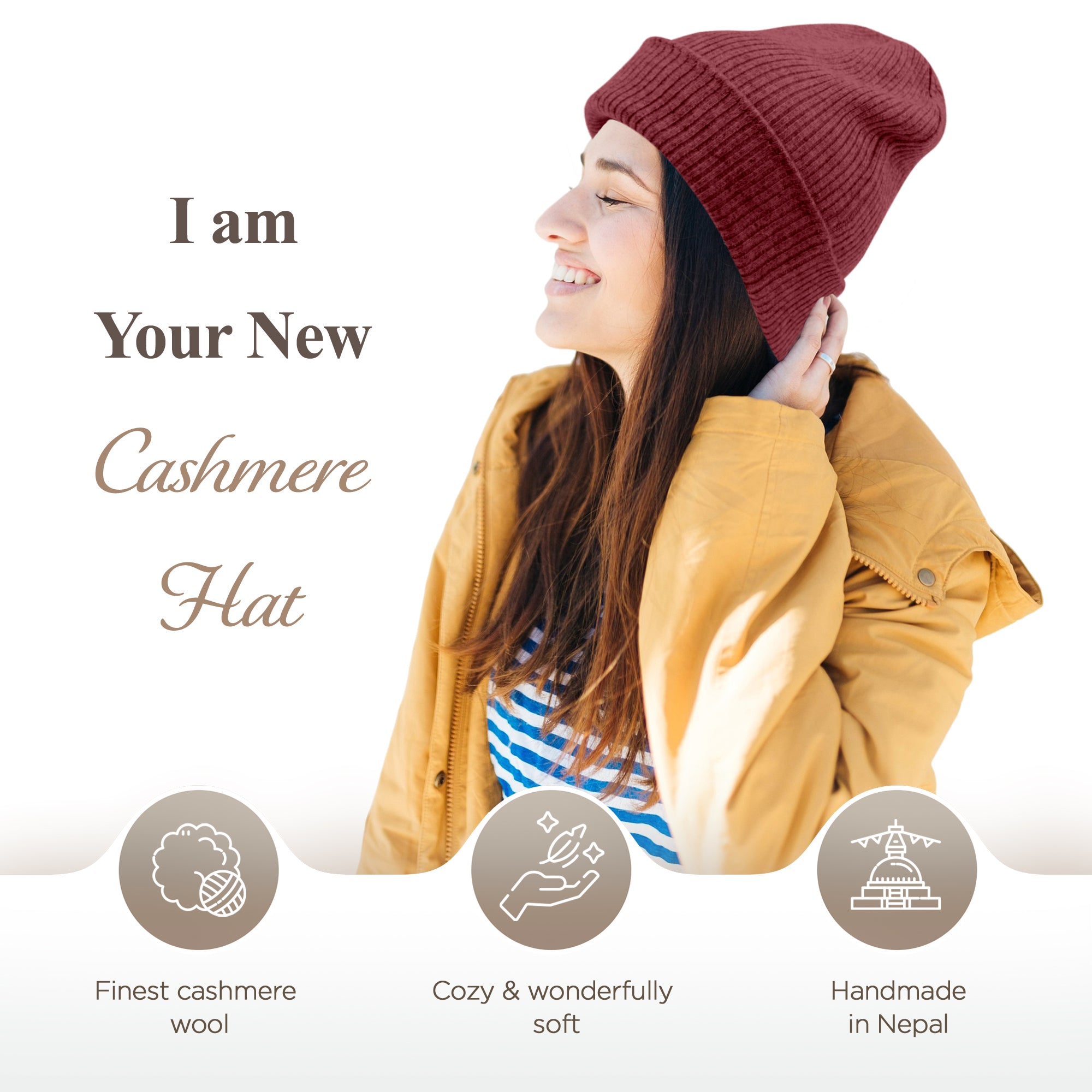 Bonnet en cachemire côtelé avec revers - rouge foncé