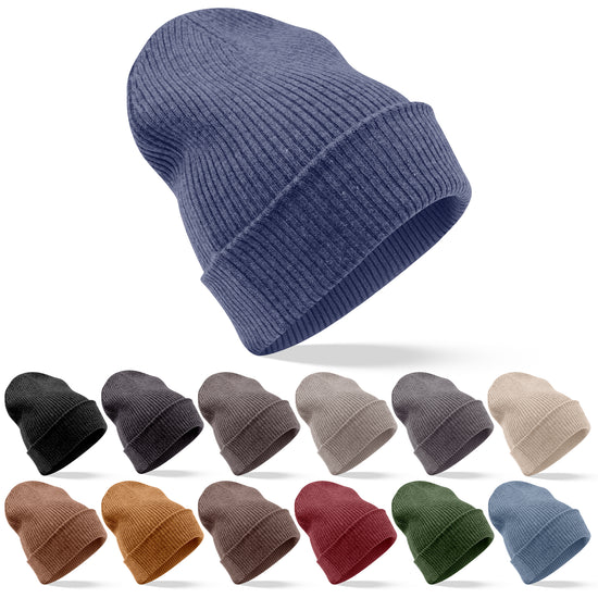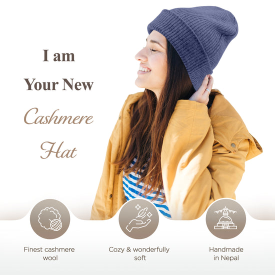 Bonnet bonnet cachemire côtelé avec revers bleu foncé