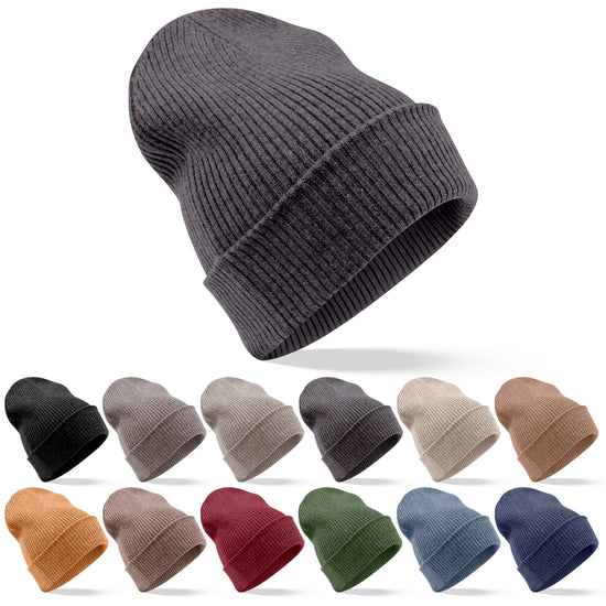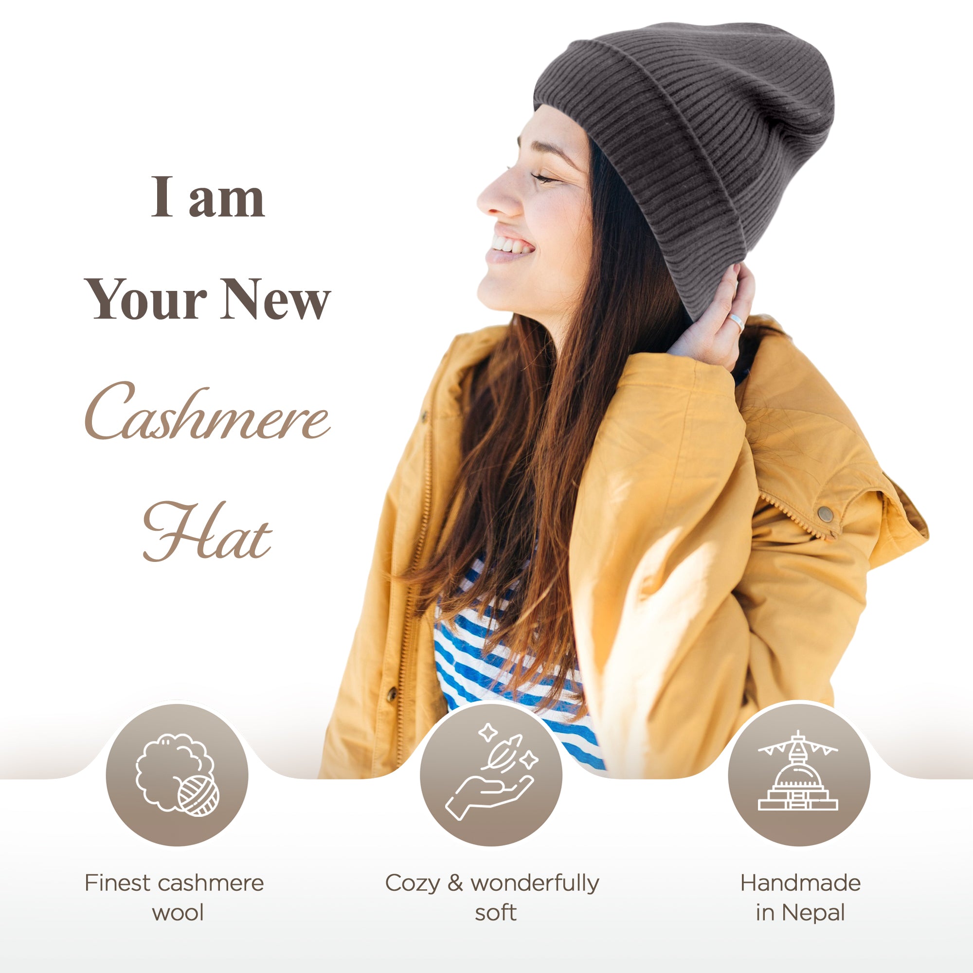 Bonnet bonnet cachemire côtelé avec revers noir gris