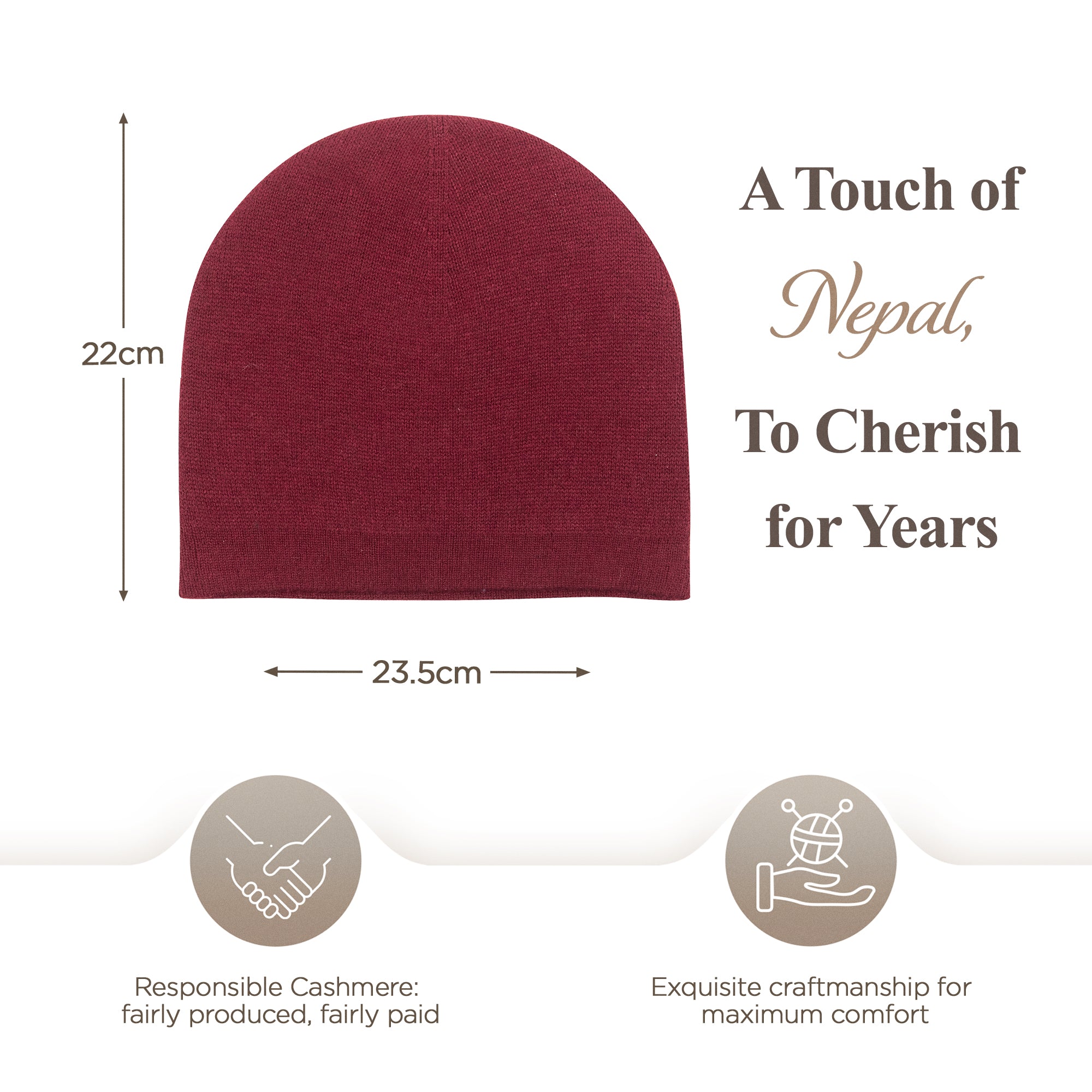 Bonnet bonnet cachemire lisse rouge foncé