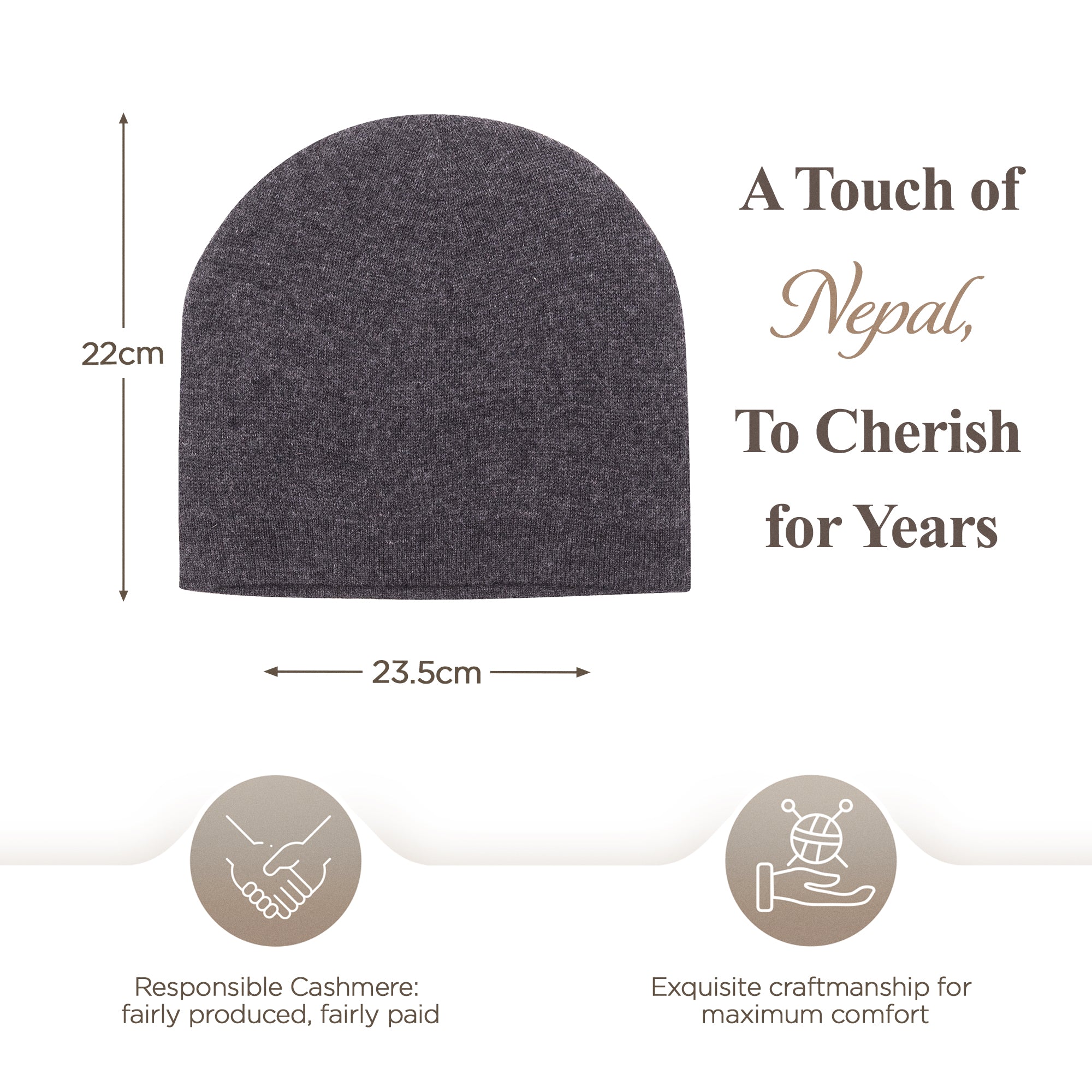Nos produits en cachemire proviennent de la magnifique région himalayenne du Népal. Là-bas, dans les montagnes majestueuses, vous trouverez la maison des chèvres cachemire, qui fournissent l'une des fibres les plus précieuses et les plus douces au monde : la laine cachemire. Les techniques traditionnelles de l'artisanat du Cachemire ont été transmises de génération en génération par des artisans locaux au Népal pour garantir la qualité exceptionnelle de nos produits.